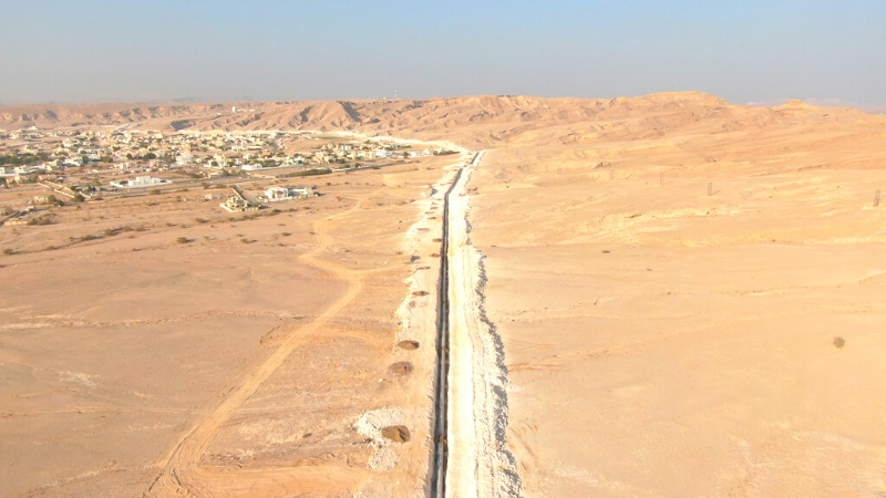 The water pipeline is constructed in parallel with the current water pipeline between Sohar and the Governorate of Al Buraimi, which will contribute to providing future water needs.