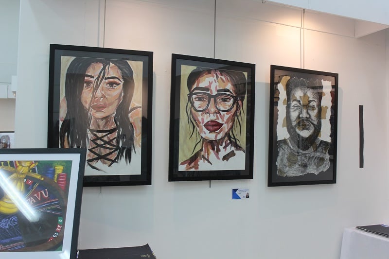 Elouise Sellers’ eye-catching installation of brightly coloured flowers is proving to be a big hit at the exhibition. She says it has taken her a full month to complete. Does she love flowers. She smiles as she replies. It was an assigned project given by art teacher, so I just did it. Looks good, doesn’t it?. Her exhibits at the exhibitions also includes an interesting canvas, showing inclination towards portraiture.